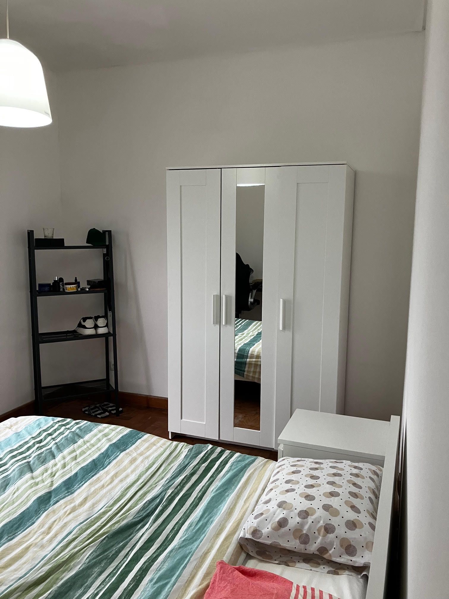 Spacious single room with a single bed, abundant sunlight, and a pleasant view.